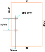 印刷物に正円の孔を開ける加工です。開ける孔の数や大きさには種類があり、用途に合わせて選ぶことができます。 ページのノドの部分に孔をあけ、リングやバインダーなどで綴じる場合などによく使用されます。